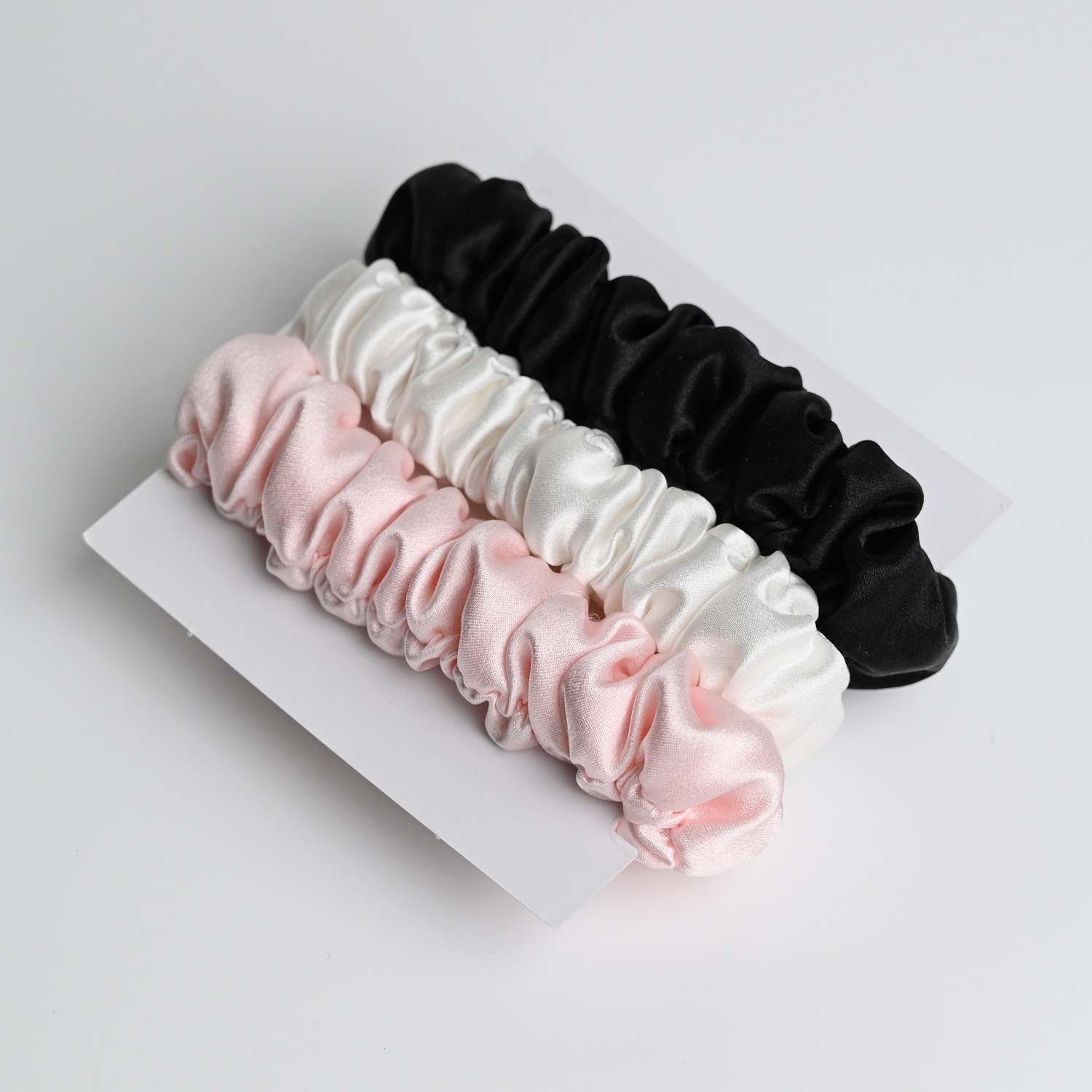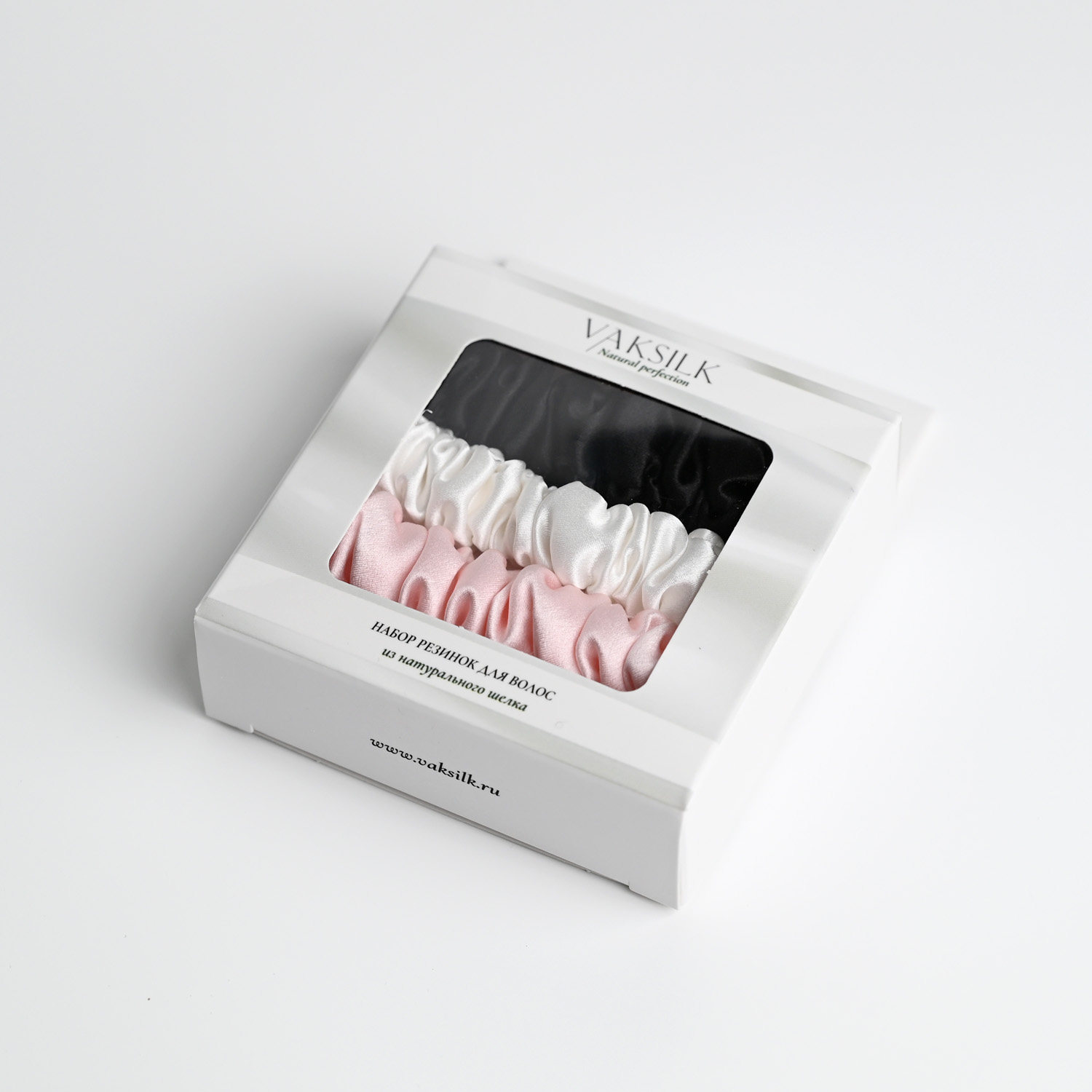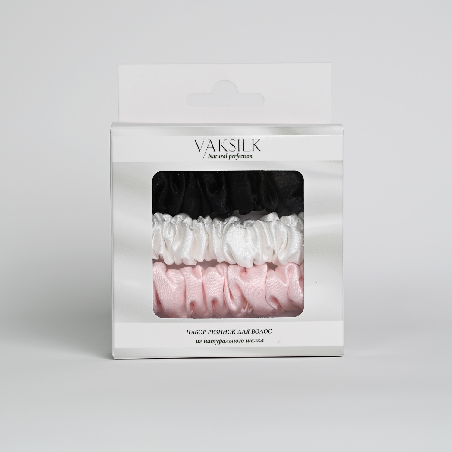 Набор резинок для волос "Medium" розовый, черный, айвори — изделие из натурального шёлка | VAKSILK