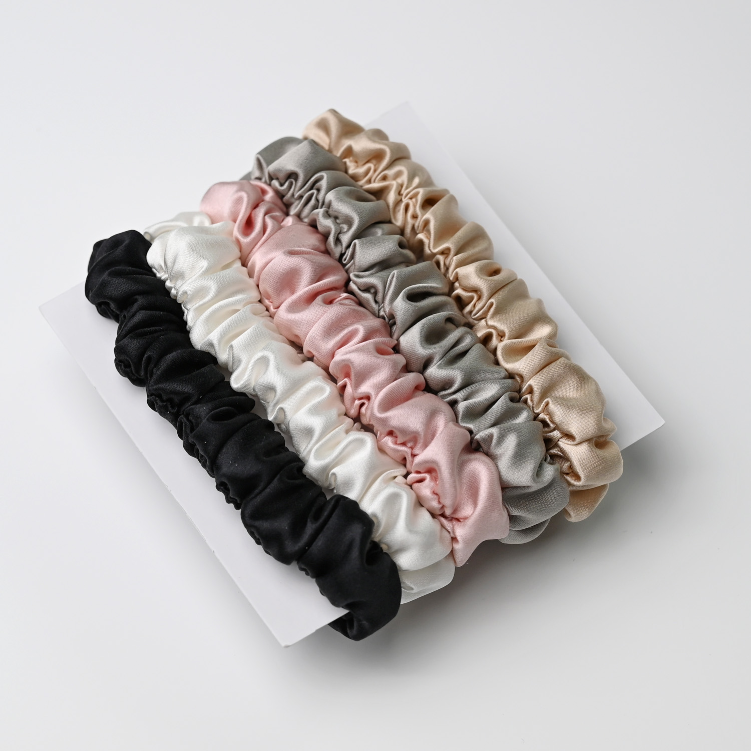 Набор резинок для волос "Small" | молочно-белый, черный антрацит, шампань, жемчужно-розовый, серебристый — изделие из натурального шёлка | VAKSILK