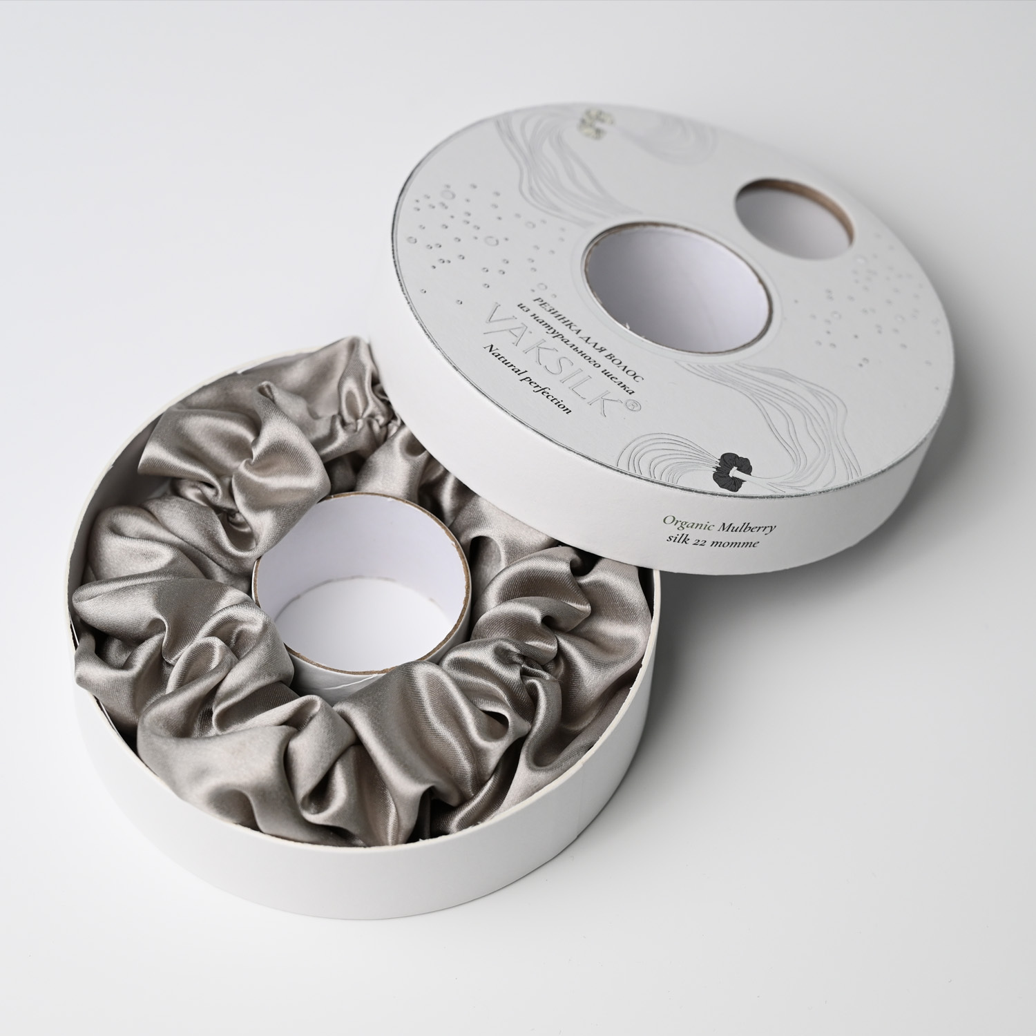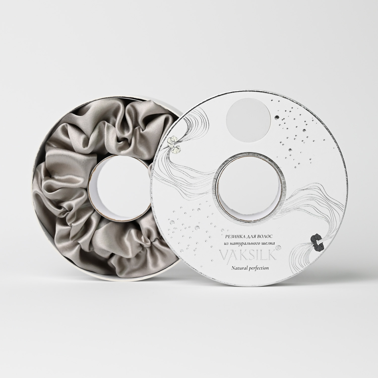 Резинка для волос "FLOWER" серебристый — изделие из натурального шёлка | VAKSILK